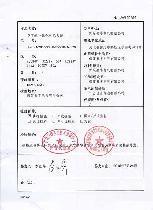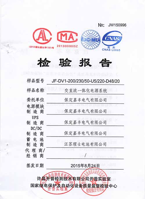 交直流一体化电源检验报告