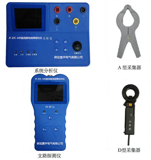 直流接地故障定位仪由系统分析仪、支路探测仪、采集器三部分组成,如下图示:
